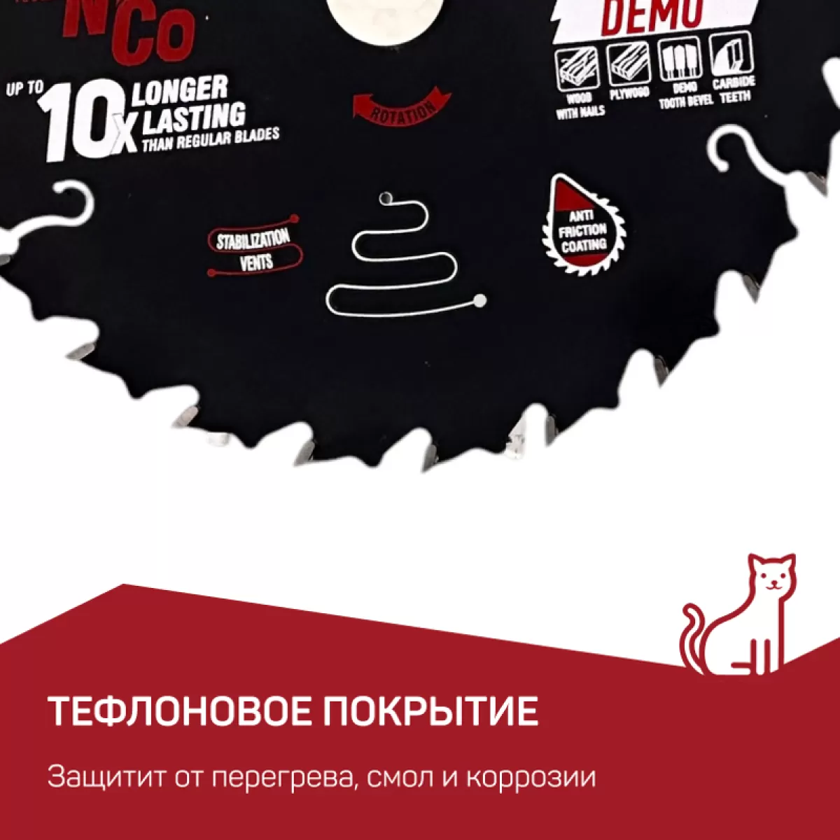 • Эксклюзивная технология изготовления диска — отверстия для стабилизации повышают качество реза и снижают уровень шума.