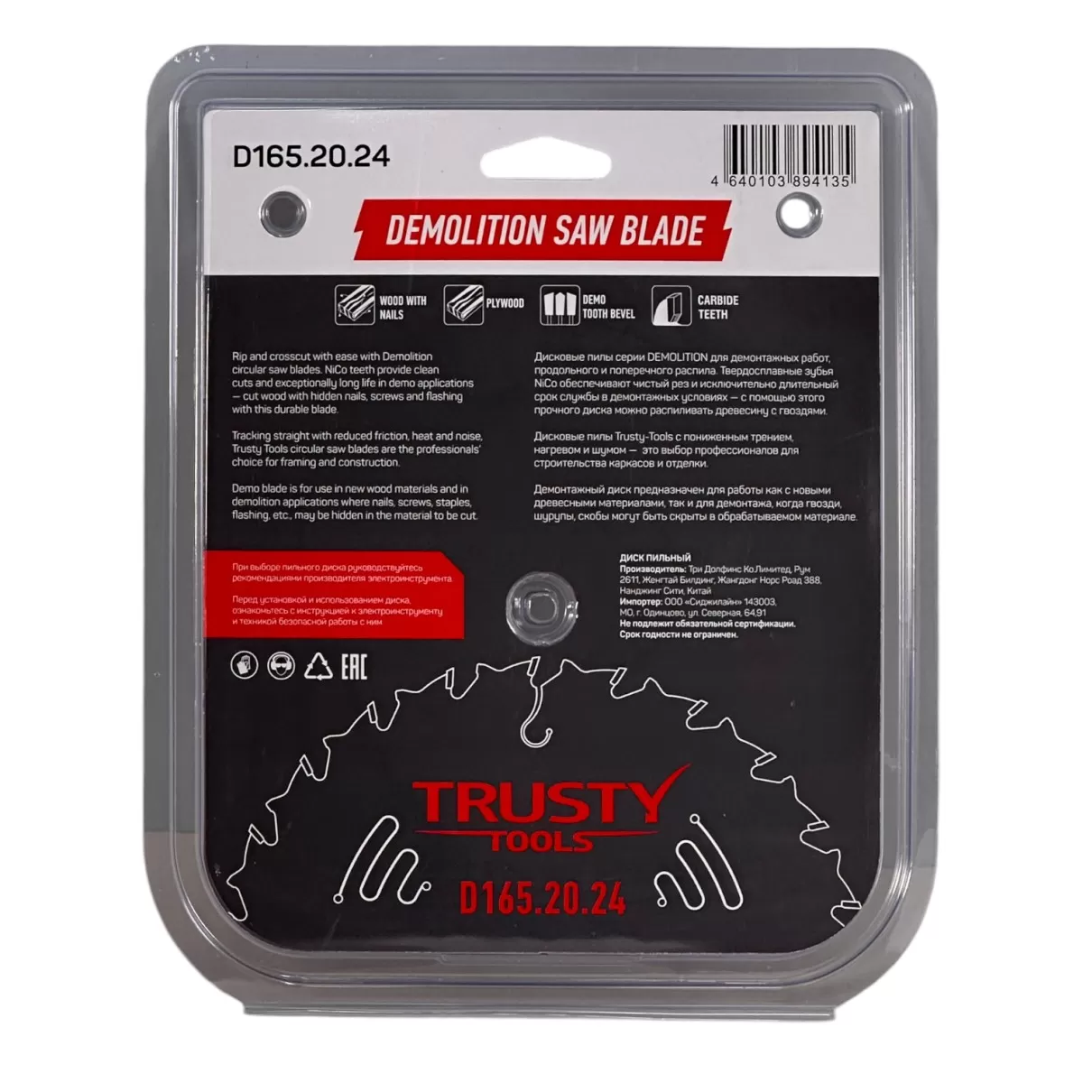 Диск демонтажный Trusty-Tools Demolition 165х20 24T