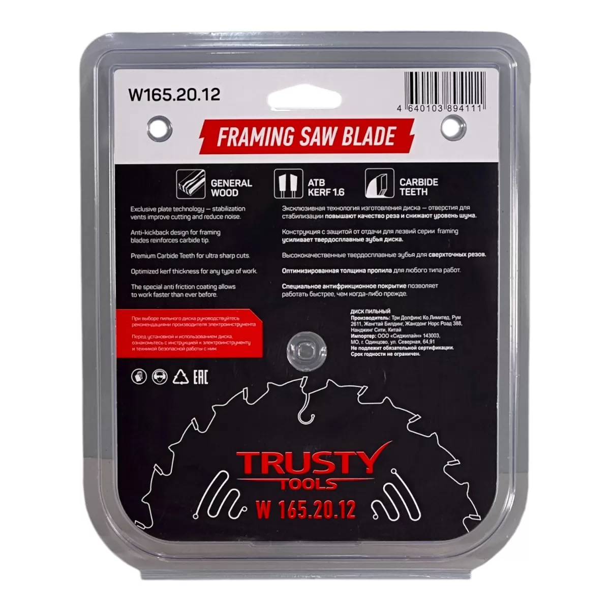 Диск пильный Trusty-Tools Framing по дереву 165х20 12T