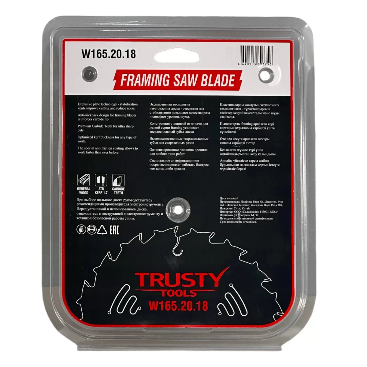 Диск пильный Trusty-Tools Framing по дереву 165х20 18T