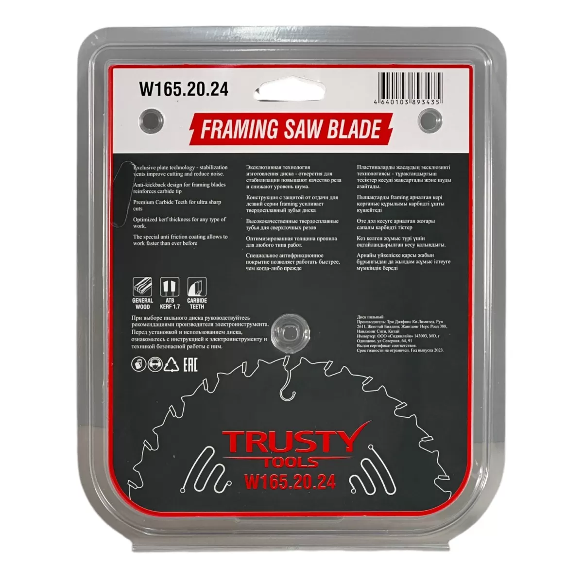 Диск пильный Trusty-Tools Framing по дереву 165х20 24T