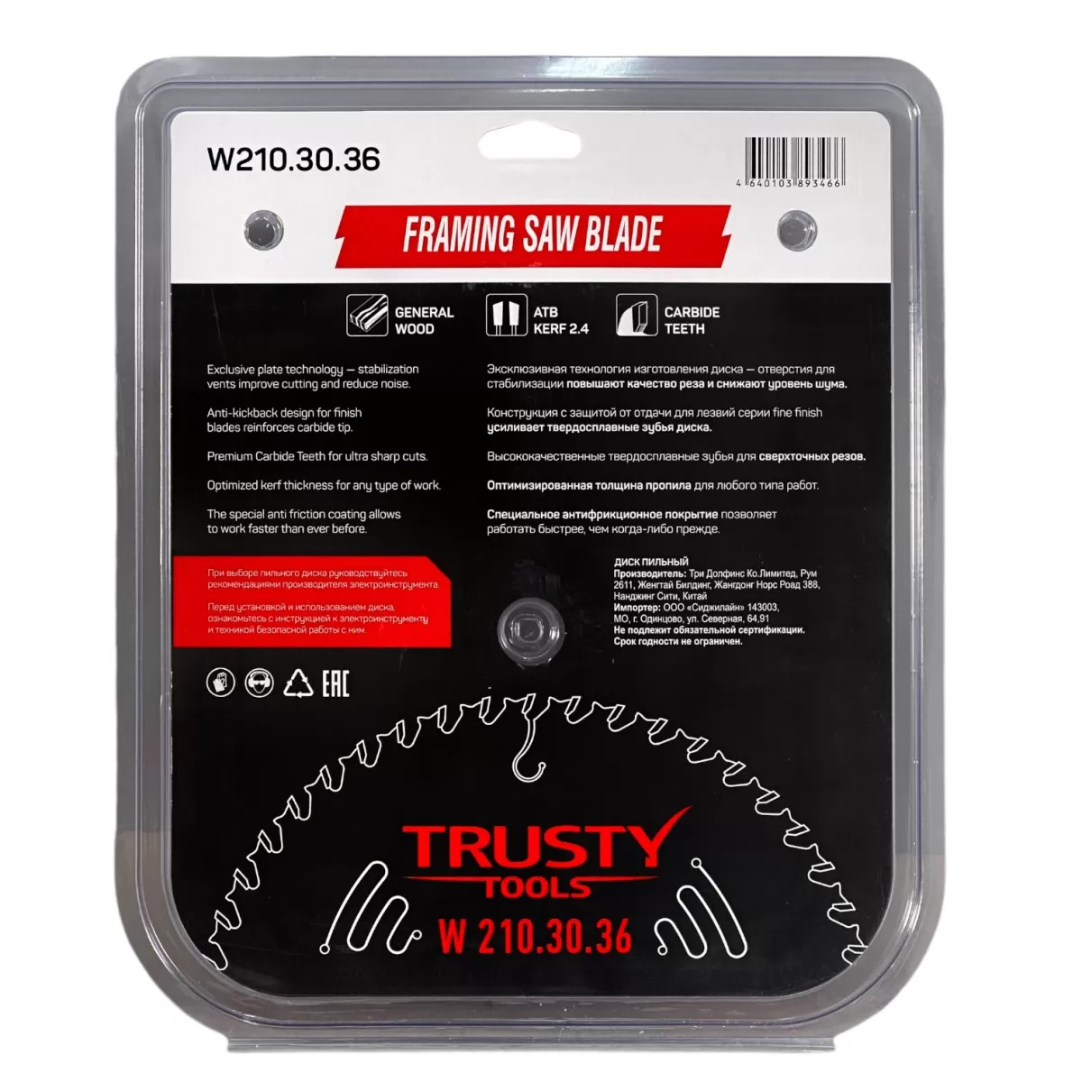 Диск пильный Trusty-Tools Framing по дереву 210х30 36T