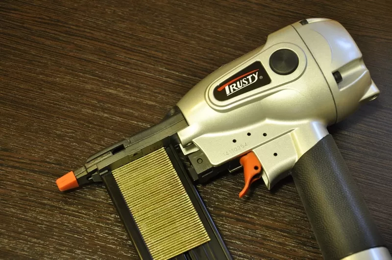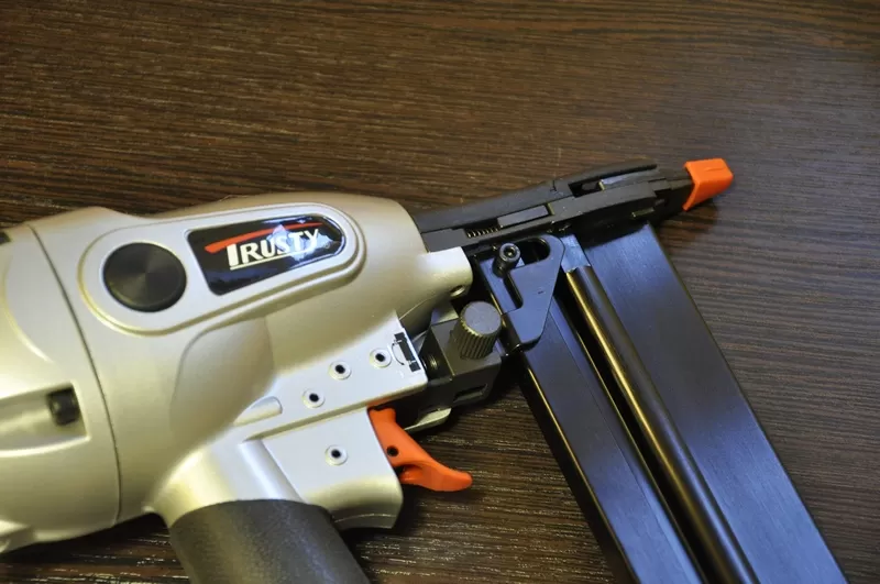 Блокировка пустого магазина, прорезиненная нескользящая ручка, регулятор заглубления гвоздя в материал, защита от двойного выстрела, узкая носовая часть