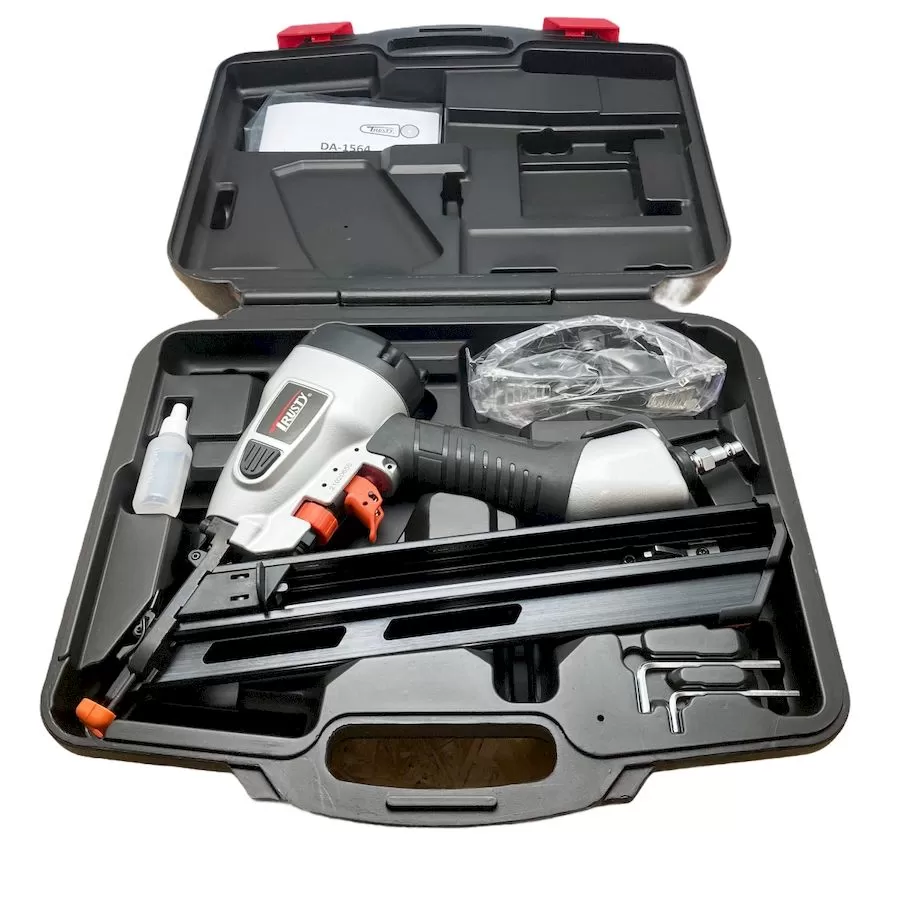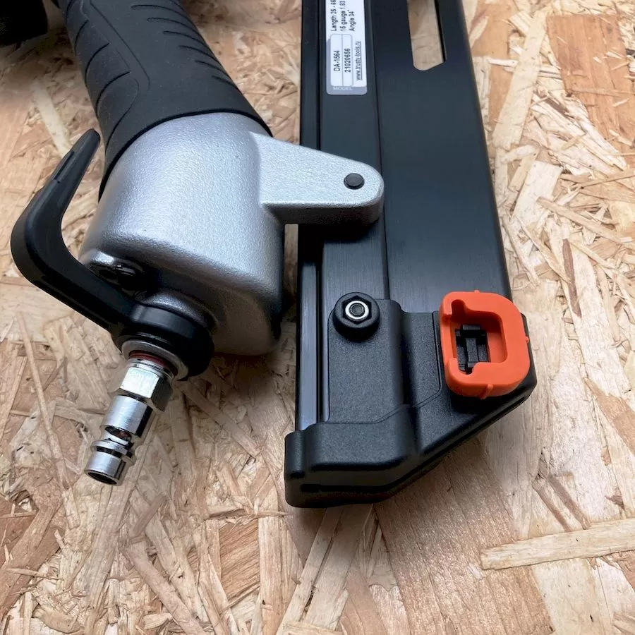 Отделочный гвоздезабивной пистолет с наклонным магазином DA-1564 используется для крепления материалов из дерева. Использует самый крупный калибр отделочных гвоздей 15 типа.