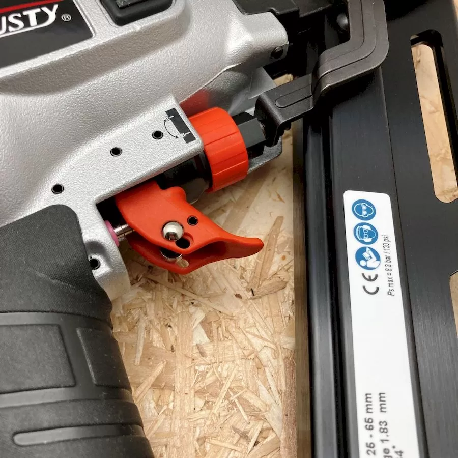 Гвозди 15 калибра, которыми работает данный пистолет, подходят для крепления декинга, планкена, имитации бруса и паркетной доски толщиной до 2 см. Круглая форма шляпки гвоздя позволяет использовать этот инструмент для сквозного крепления доски, в таком случае гвозди являются элементом декорирования.