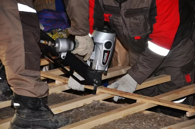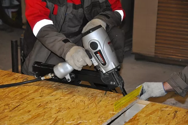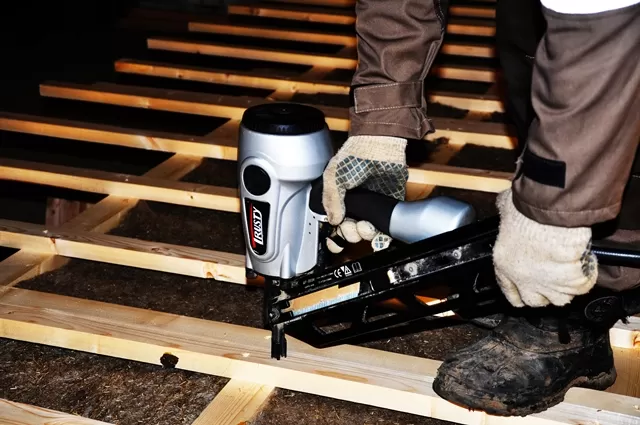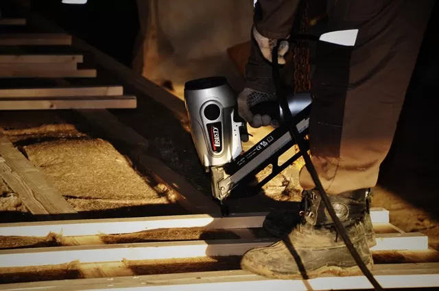 Широкий ассортимент крепежа — гладкие, ершенные, гальванизированные. Пистолет сбалансирован для работы одной рукой. Имеет шипы в носовой части для удобной работы со стропилами, когда приходится стрелять под углом. Основное применение — каркасные работы, сборка щитовых панелей, временных ограждений.