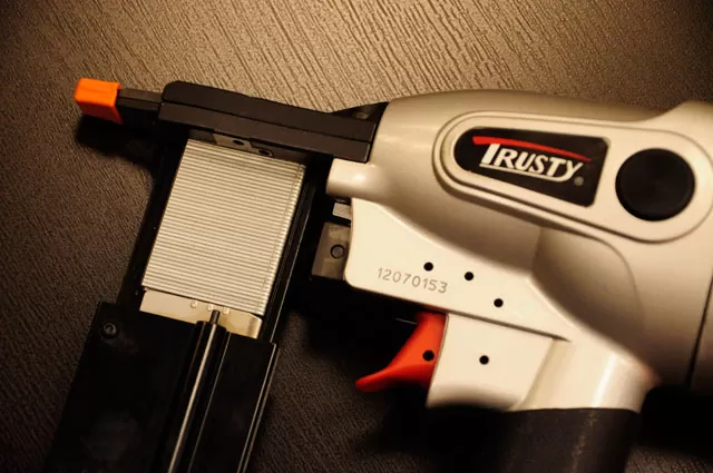 Оптимальная длина крепежа до 40 мм и узкий носовой механизм инструмента позволяет использовать степлер для аккуратной работы с листовыми материалами. В домостроение TSN-9040 подходит для крепления фанеры и OSB, потайном крепеже вагонки и имитации бруса. Скоба имеет такое же сечение, что и отделочный гвоздь, но за счет спинки лучше удерживает материал под нагрузкой. Производственное применение узких скоб — это мебельная сборка из фанеры, сборка тары, ящиков и обрешетки груза, монтаж резиновых уплотнителей к деревянным изделиям, пристрелка мебельной ленты. Подойдет для пристрелки тонкой металлической ленты или листа к древесине. Скоба под данный инструмент гальванизированная.