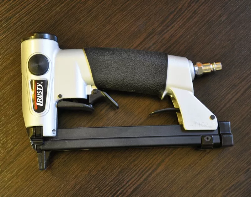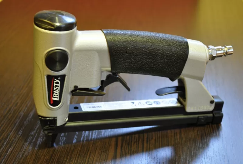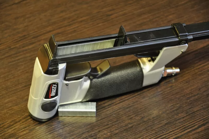 Пневмостеплер — представляет из себя усложнённый вариант обычного степлера. Он подойдёт для монтажа ткани, изоляционный материалов, тонкой фанеры и дерева. Пневматический степлер позволит, не прилагая мускульных усилий, крепить материал к потолку и стенам, в том числе под углом и в труднодоступных местах. Пневматический степлер — обладает внушительным запасом мощности, что важно при работе, с твёрдыми сортами древесины, такими как дуб. В строительстве используется для крепления кляймеров под вагонку и имитацию бруса.